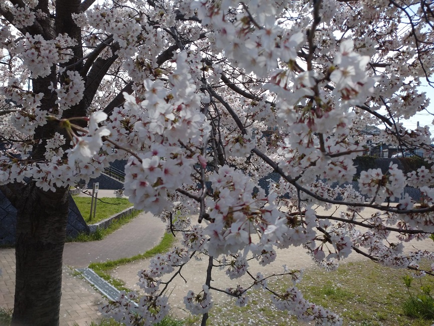 ワークネット北九州では有志を募り、気分転換や体力や調子を整えるためのウォーキングを定期的にしています。花冷えの雨の前日で絶好の花見シーズンということもあり、高見神社へウォーキングをしました。桜は蕾なく咲き誇っており、ウォーキングの通り道の脇にも多く並んでいるのを見ることができました。真新しい装いをした新社会人や学生と思しき人々も同じように桜を眺めていたのでしみじみとしてしまいました。