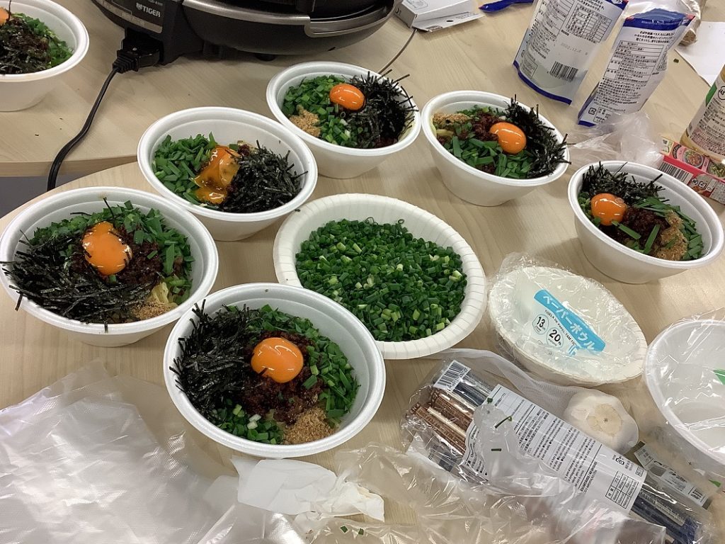 4月29日の土曜開館にて、利用者のHさん考案で名古屋名物の台湾まぜそば作りました。参加者は8人でした。