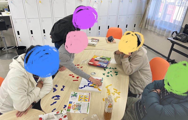 人生ゲーム、ブロックスなど、現代ゲームで白熱の心理戦・頭脳戦を各々展開し、心身ともに非常に温まることができました。外で遊ばなくても、屋内で人と顔を合わせて勝負を楽しむだけでも十分に健康的かつ刺激的で充実した時間を過ごすことができると実感できました。