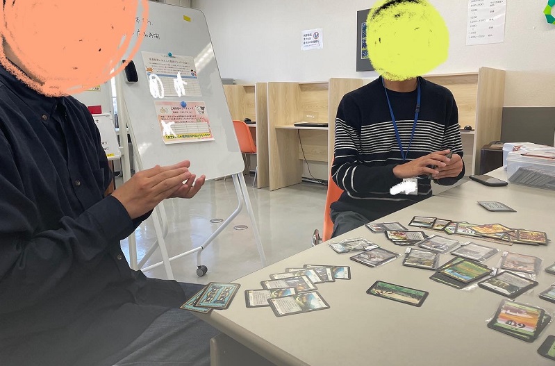 ワークネット北九州では月に1~2回程度、息抜きや利用者の皆様のコミュニケーションの場として、祝日や土曜日に各種レクリエーションを行っています。その中の一つがボードゲーム会です。ワークネット北九州ではみんなで遊べるボードゲームを多く用意しております。