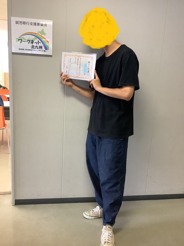 そこから悩みを聞いてもらったら、自信を取り戻すことから始めたらどうか?と勧められて複数の事業所を体験し、実際に過ごしてみたら雰囲気が良くてワークネット北九州に決めました。ワークネット北九州では、支援員さん達が自分の長所を沢山見つけてくれるのでとても居心地がよくリラックスできる空間でした(*^^*)