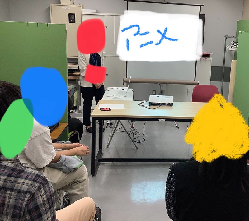 今回は、利用者の方が企画した「自分の好きなものをプレゼンする会」があり、4名の方が発表しました。夢の中で見た光景を絵に描く方、アニメ作品「モノノ怪」について語る方、独学で編み物をし作品を作る方など、様々な趣味に出会える会でした。私も発言者として参加し、アニメを一気見することが好き、という事をプレゼンしました。