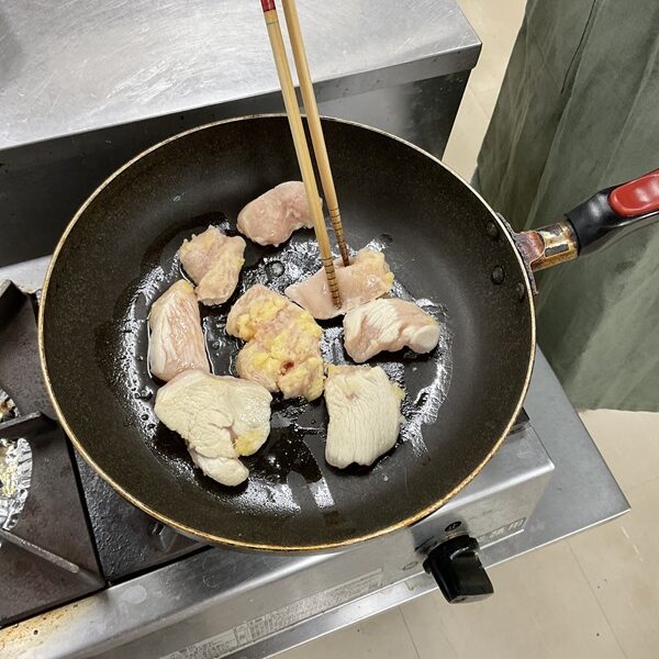 今月も自立訓練の皆さんで調理実習を行いました。今回は「チキン南蛮」を作る事に決まり、調理法調べや買い出しも皆で協力して行いました。