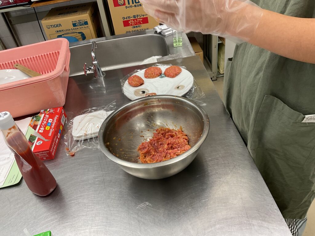 ・ハンバーグ担当で、小さいサイズのハンバーグをなんとか上手くできて良かったです。